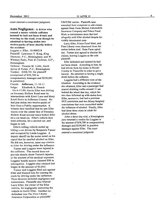 SOURCE: "The Alabama Jury Verdict Reporter," December,